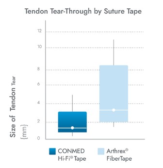 CONMED’s Hi-Fi® Tape is 69% less abrasive than the leading competitor when measuring tendon tear-through, and offers broader compression than #2 suture for increased tendon-to-bone interface.4